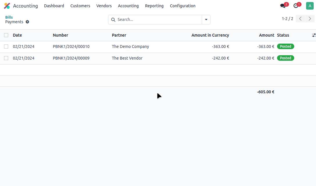 Odoo can generate those payment files for your vendor bills and for your invoices, for the customers that have signed a direct debit mandate. We will focus on the former today but the process for the later is very similar and is well documented by Odoo.