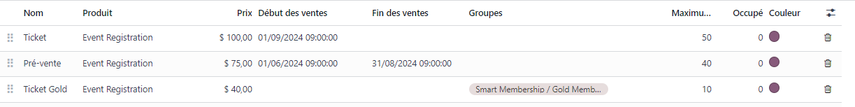 Our Tickets tab offers you great flexibility to propose different price ranges and products according to member types. For example, you can make available 10 tickets at €40 for your Gold members, 40 tickets at €75 for pre-sale, and 50 tickets at €100 for non-members.