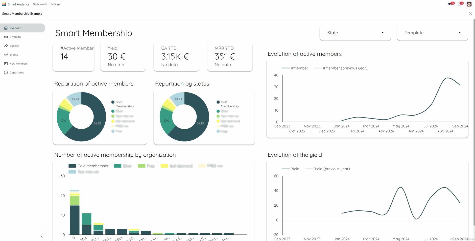Smart Membership transforms your data into actionable insights. Our dashboard allows you to spot seasonal trends in your activity, offering a clear vision of membership and participation cycles. Measure the real impact of your recruitment and retention campaigns by comparing performance before and after each action.