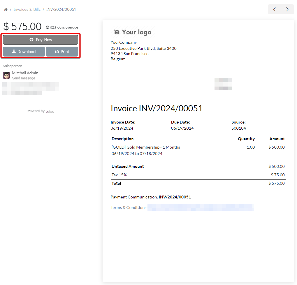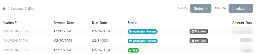 At a glance, you can see the status of each invoice: paid, pending, or overdue. If necessary, you can securely pay your outstanding balance directly from the portal. You also have the option to download your invoices in PDF format for your personal records or accounting purposes.