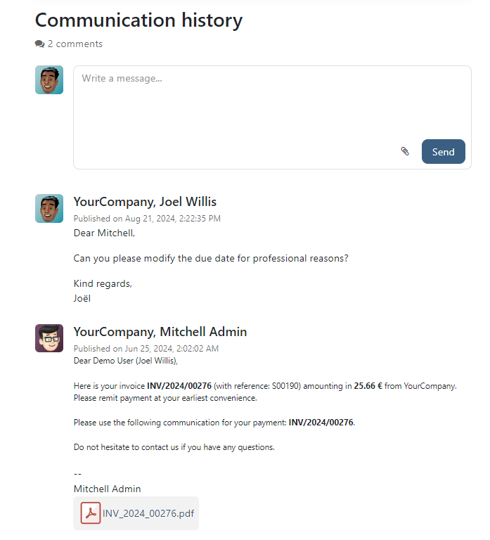 Moreover, if you have a question or need specific assistance regarding an invoice, you can communicate directly with the organization from the invoicing screen. No more going through intermediaries or juggling multiple communication channels.