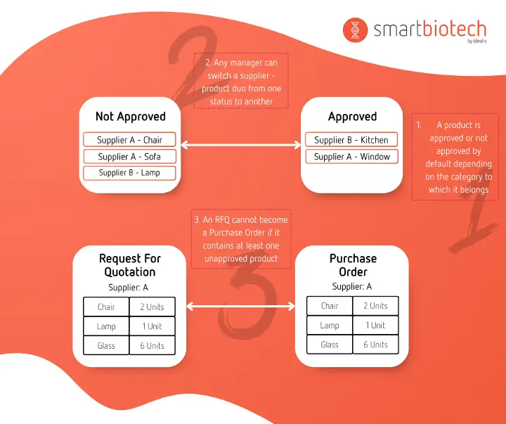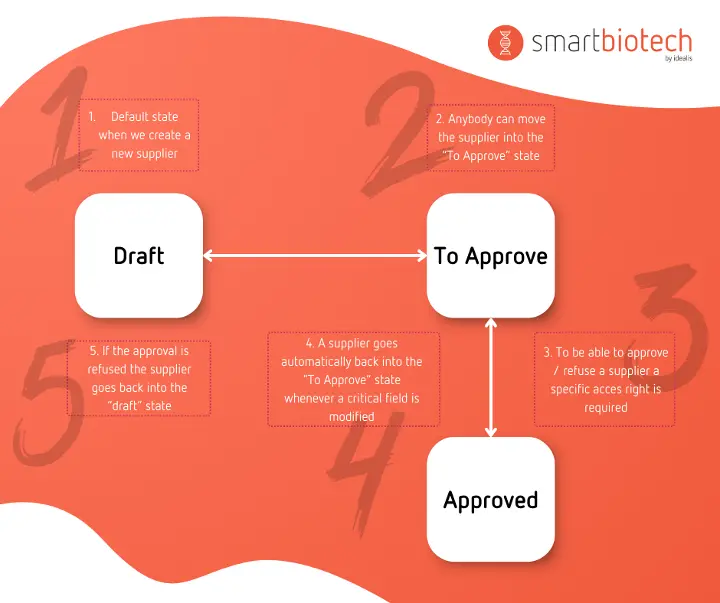 Here is the flow of the  Smart Biotech's Supplier Approval feature:
